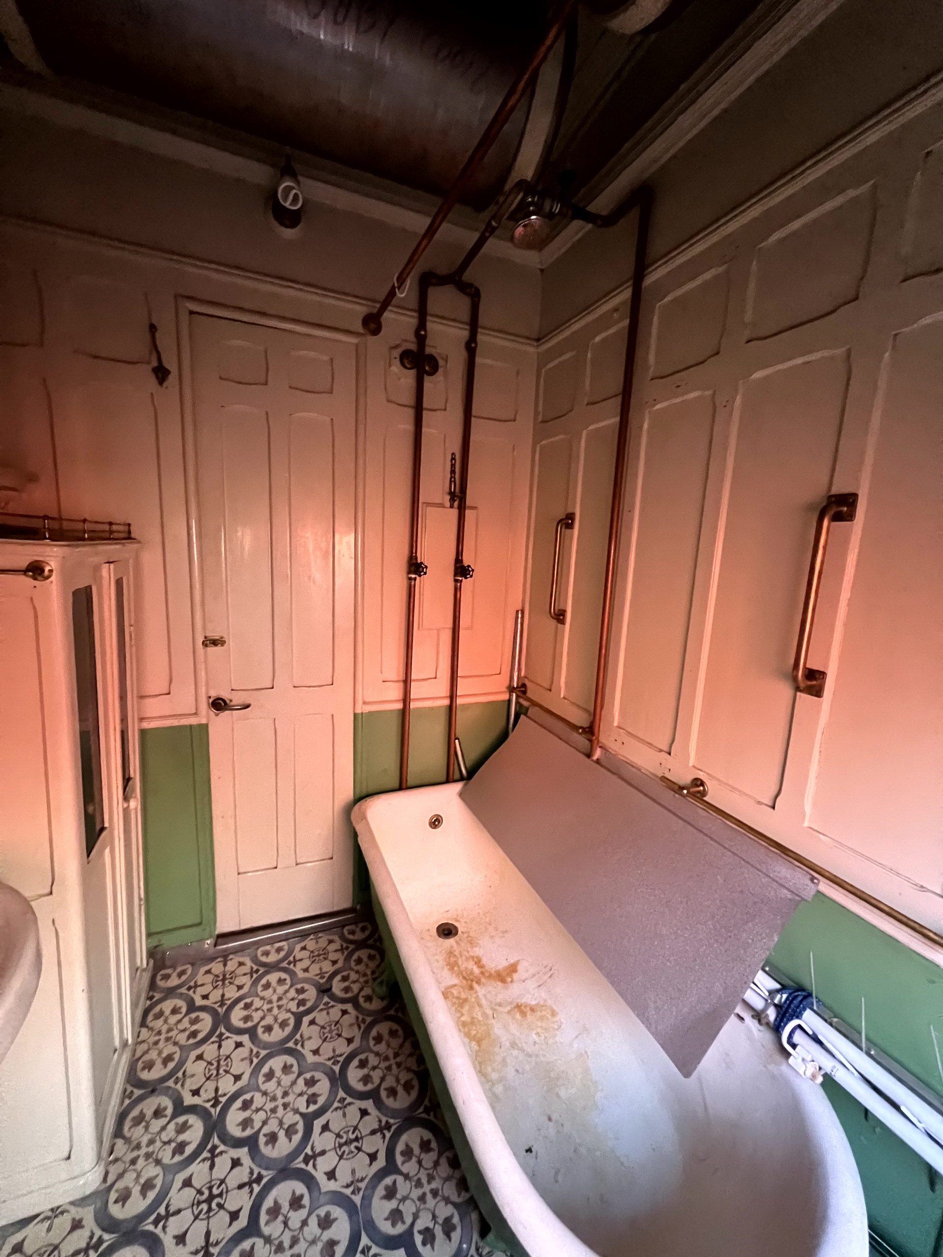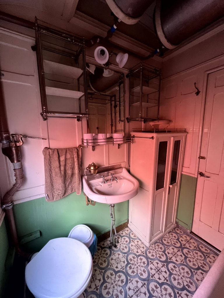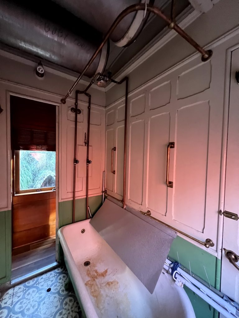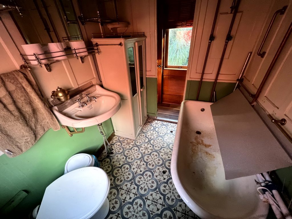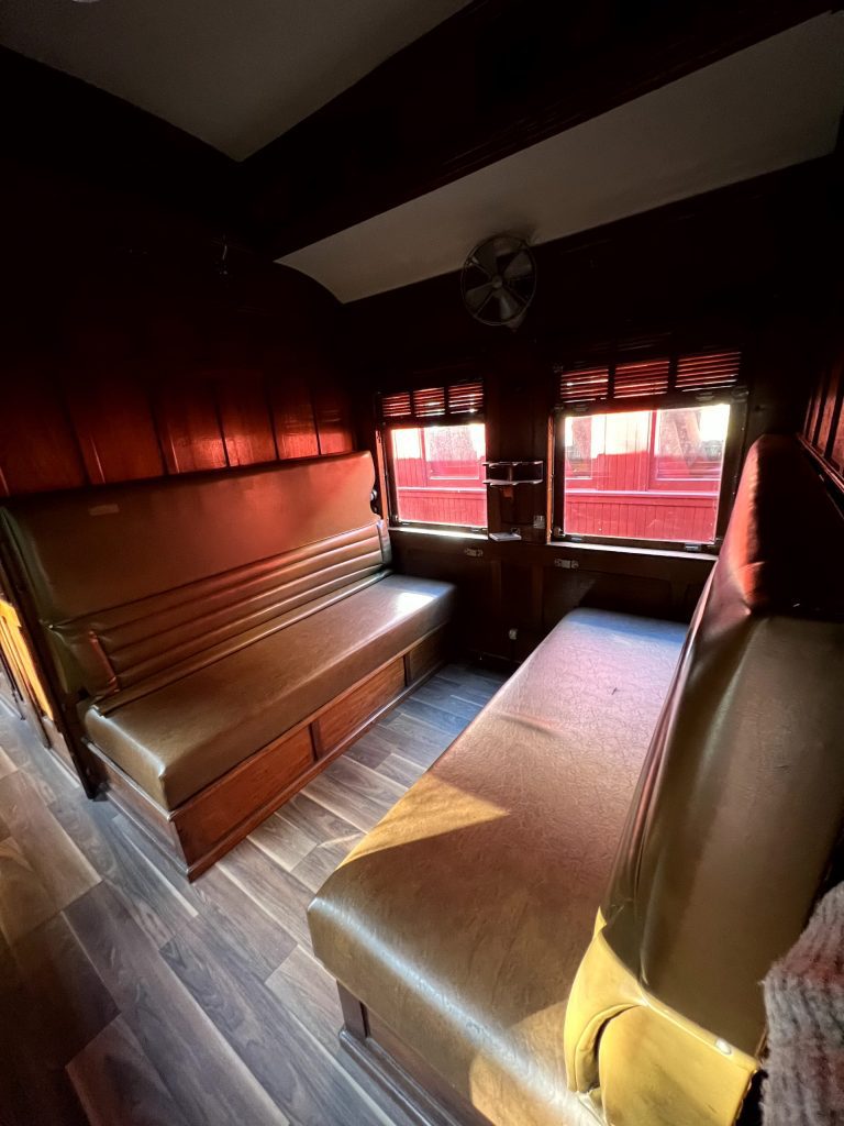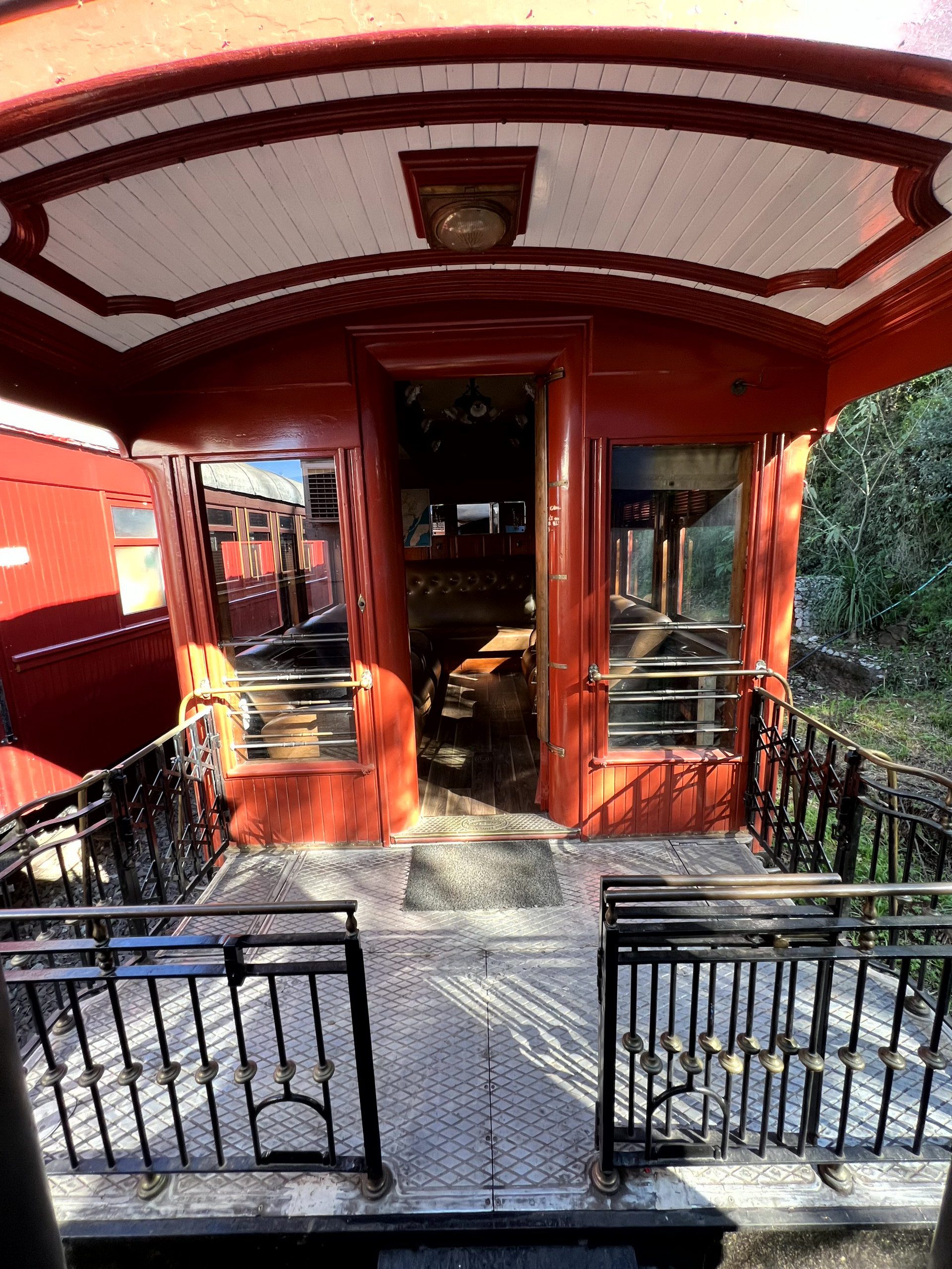 A reforma minuciosa realizada em 2002 preservou suas características autênticas, garantindo que você se transporte para uma época passada enquanto desfruta de conforto moderno. As amplas janelas oferecem vistas panorâmicas deslumbrantes, enquanto os ventiladores e os bancos estofados evocam a elegância da era. Um banheiro exclusivo, com lavatório e espelho, está à disposição dos passageiros.