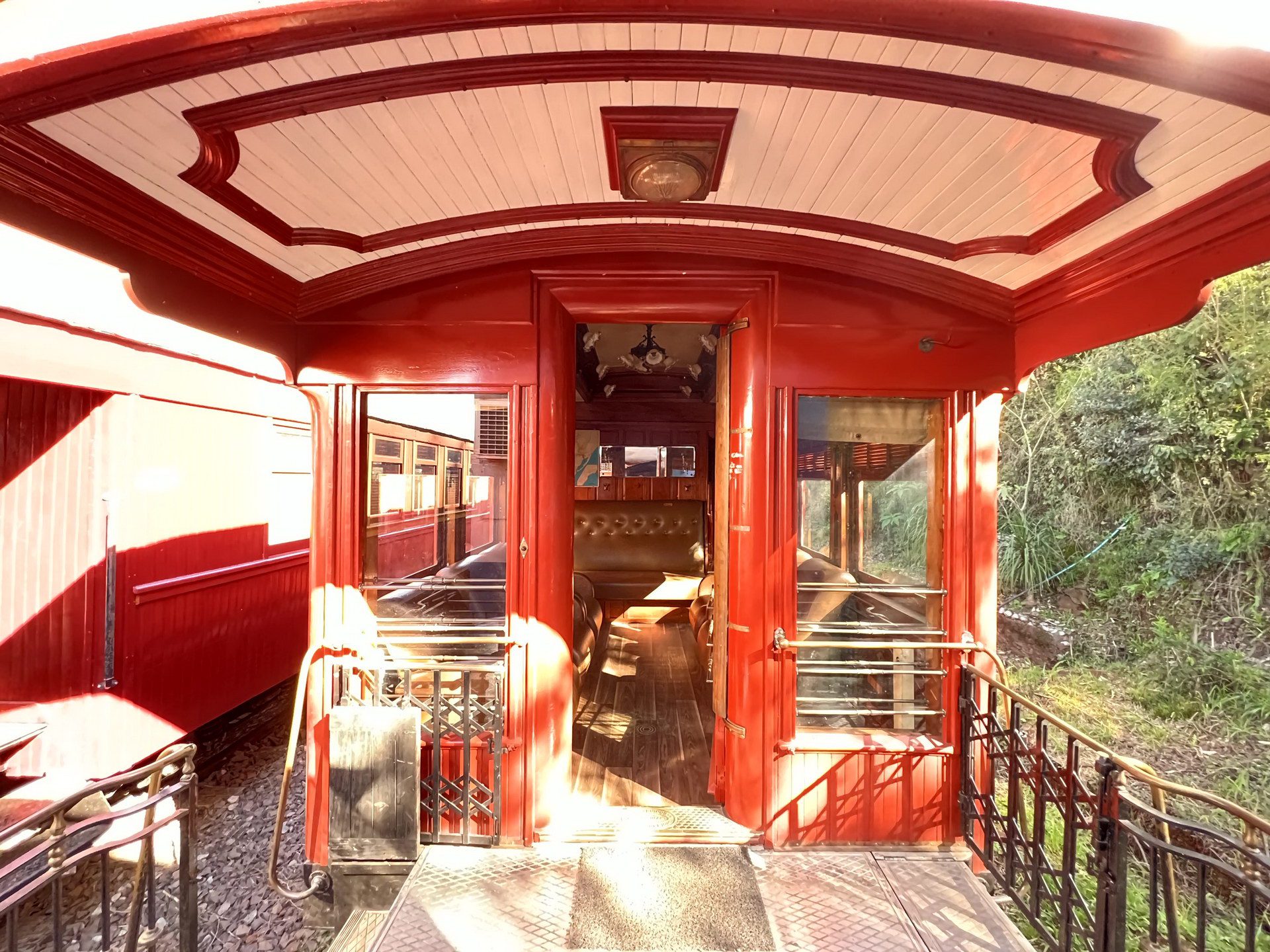 Com 12 janelas envidraçadas que emolduram paisagens deslumbrantes, o Vagão Getúlio promete uma viagem inesquecível. Poltronas em couro, espelhos e lustres complementam o ambiente, transmitindo o esplendor da época, enquanto a madeira em tons quentes oferece uma sensação de acolhimento. Para tornar sua experiência ainda mais especial, nosso serviço de bordo comercializa desde espumantes até doces e salgados no espaço.